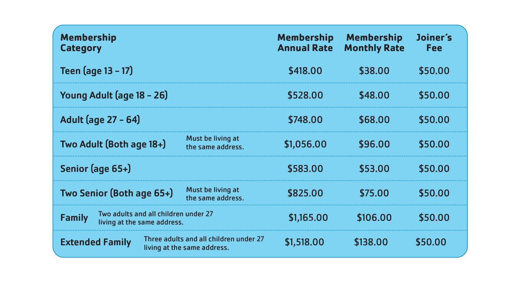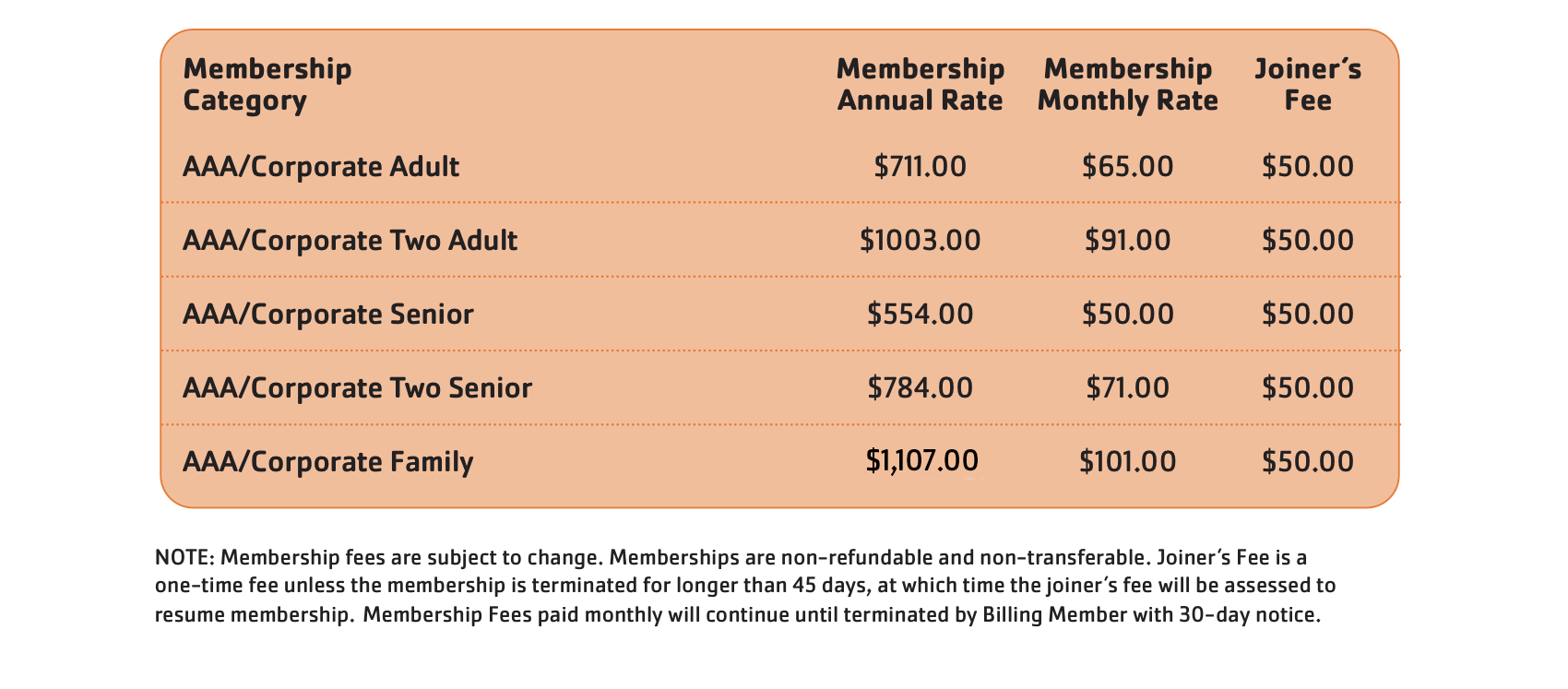 Are you a current member of AAA Motor Club and age 18 or older? Show us your card and you will receive our AAA membership rate — a 5% discount on our Adult, Two Adult, Senior, Two Senior, and Family facility memberships.